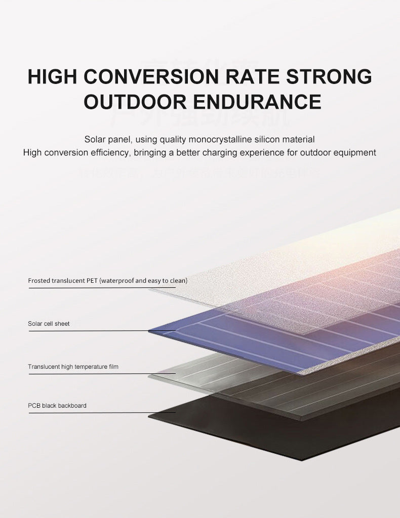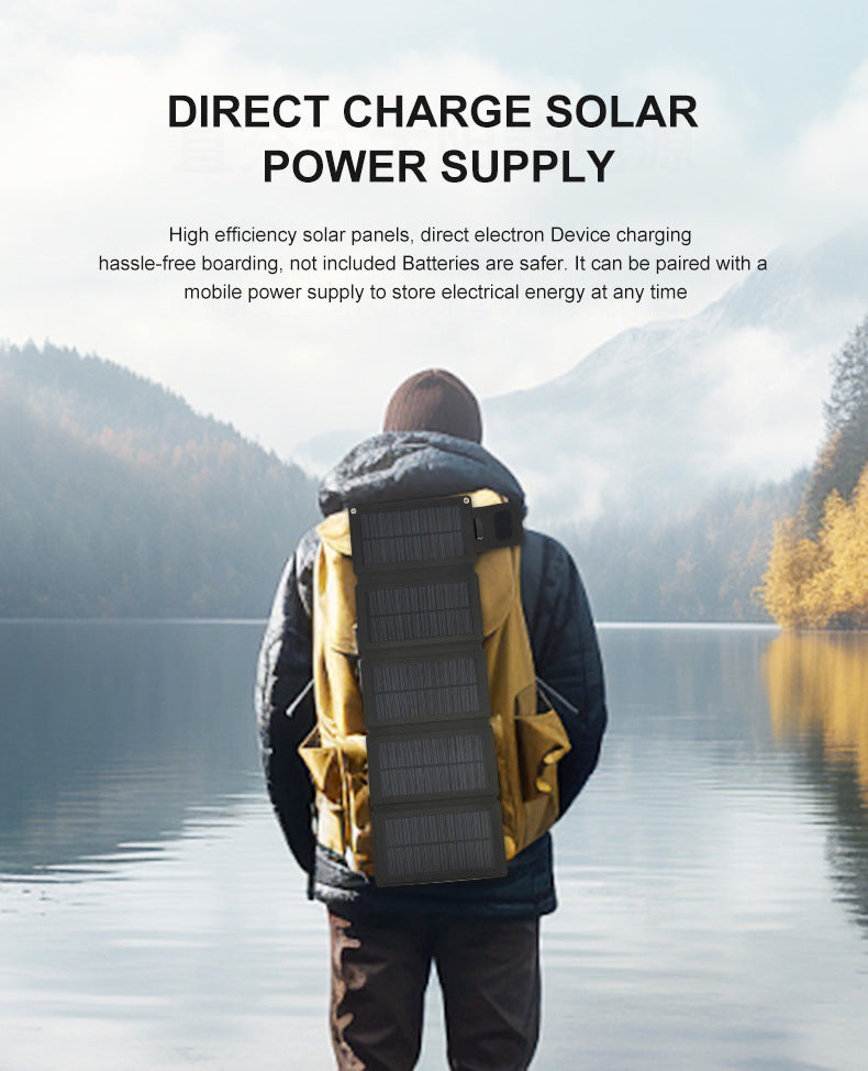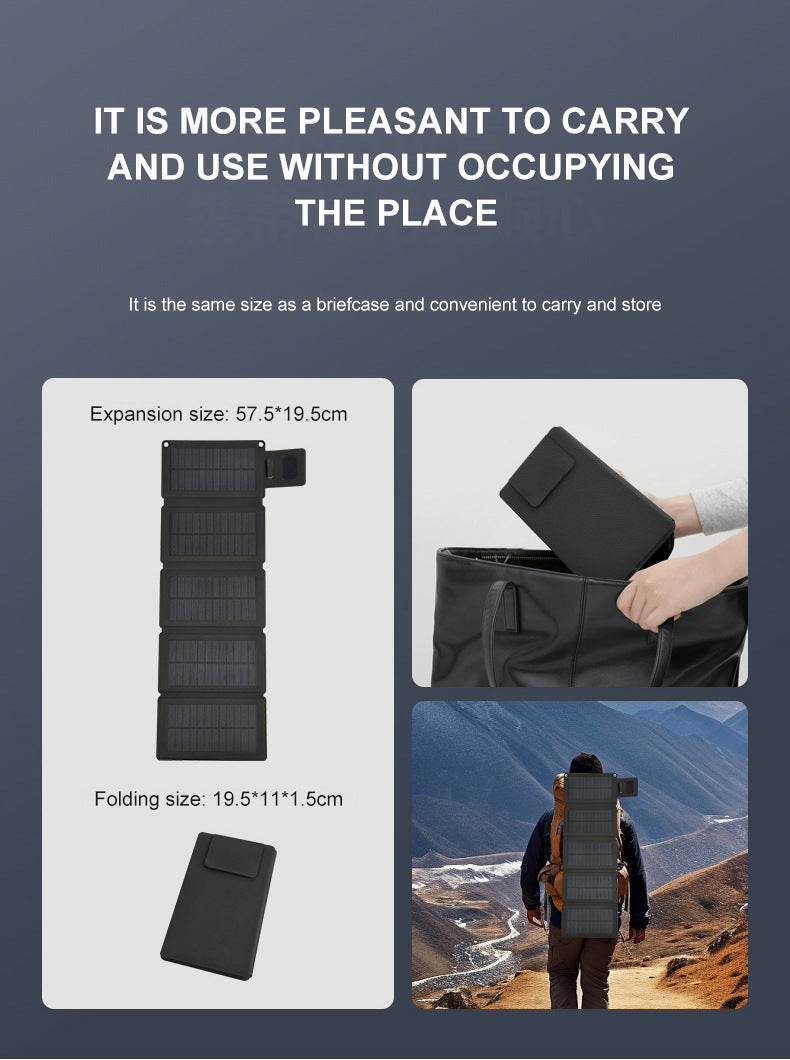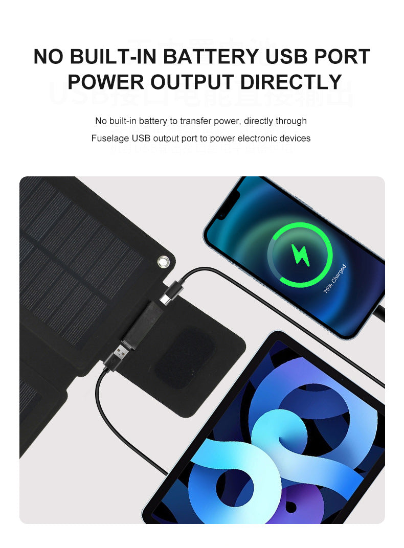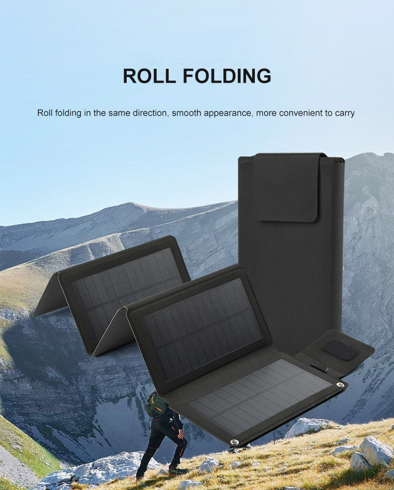 - 20W High-Efficiency Solar Output — Reliable power for smartphones, tablets, power banks, and small devices.